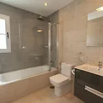 Bathroom facilities also include a walk-in shower, a separate toilet, and a washing machine. A hair dryer and towels also ensure a comfortable experience.